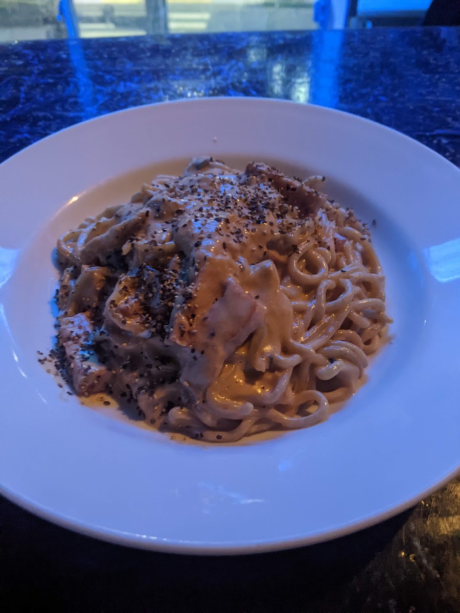 As you approach Kagiya-Cafe, the intriguing façade—a vintage building adorned with a mesmerizing blue light—draws you in. Entering is like stepping back in time, with a warm atmosphere enriched by the soft glow of its cozy interiors. Although the space is intimate, it creates an inviting ambiance perfect for catching up with friends or enjoying a moment of solitude. The subtle background music enhances the experience, adding a contemporary touch to this classic setting.